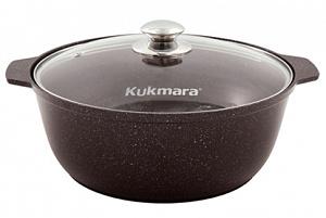 Кастрюля-жаровня 5л с крышкой антипригарная литая Кофейный мрамор ТМ Kukmara