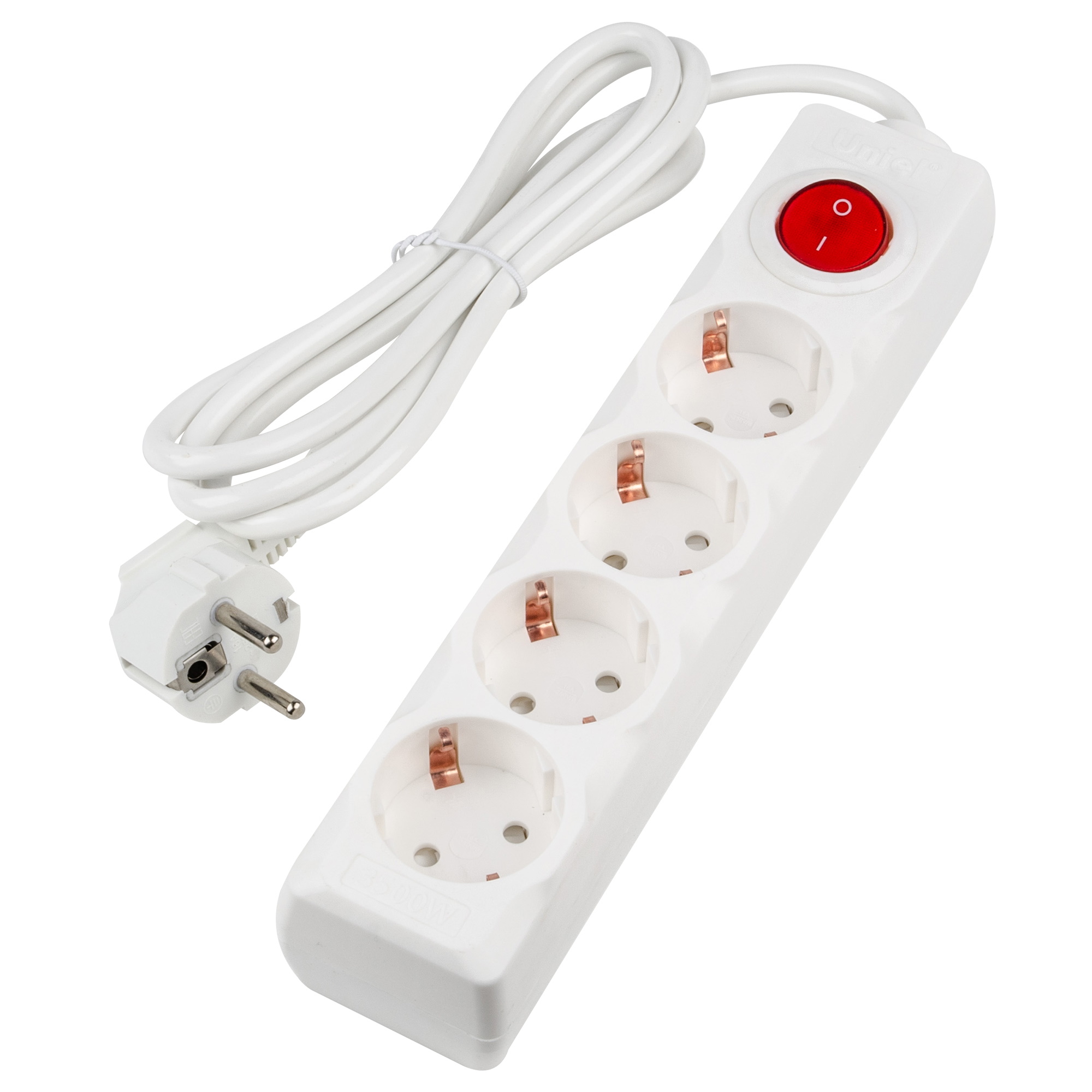 Удлинитель Uniel 1.5м 4гн c заземлением c выключателем 16А белый Ultra S-GCU4-1.5B